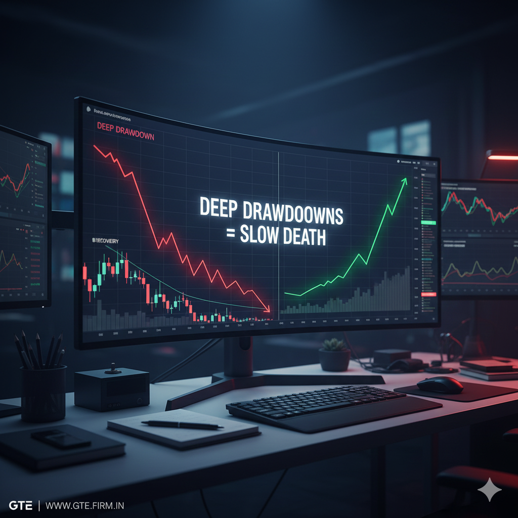 Traders don’t blow up because of one bad trade.They blow up because they allow deep drawdowns that mathematically become impossible